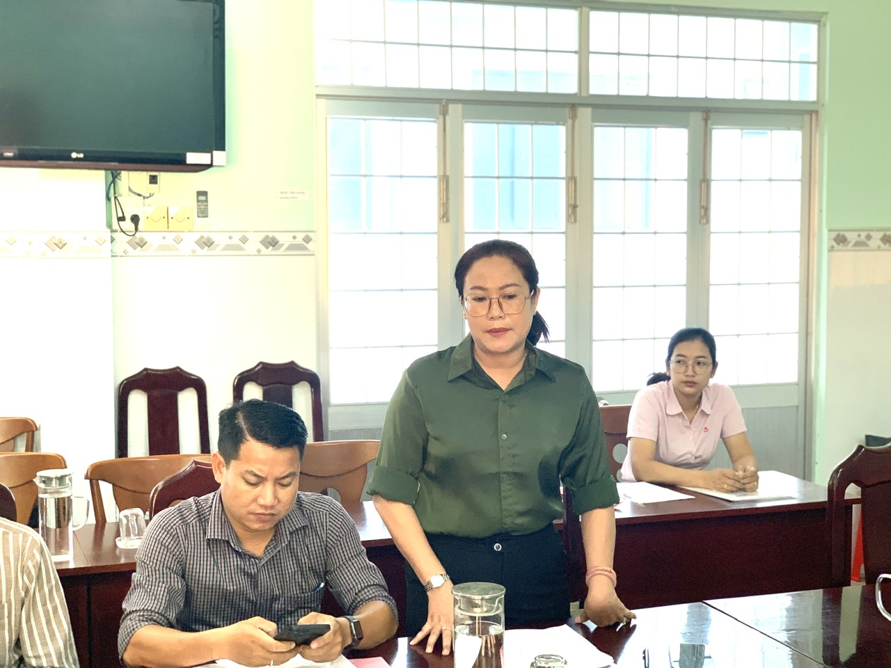 Đ/c Lâm Thị Hồng Hạnh, Phó Giám đốc Phòng giao dịch Ngân hàng chính sách xã hội Cầu Ngang phát biểu tại hội nghị.